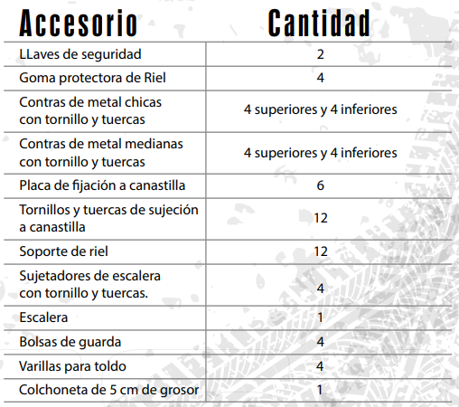 -Cuenta con tela antidesgarro de 280 g/m² con revestimiento impermeable y protección UV.
